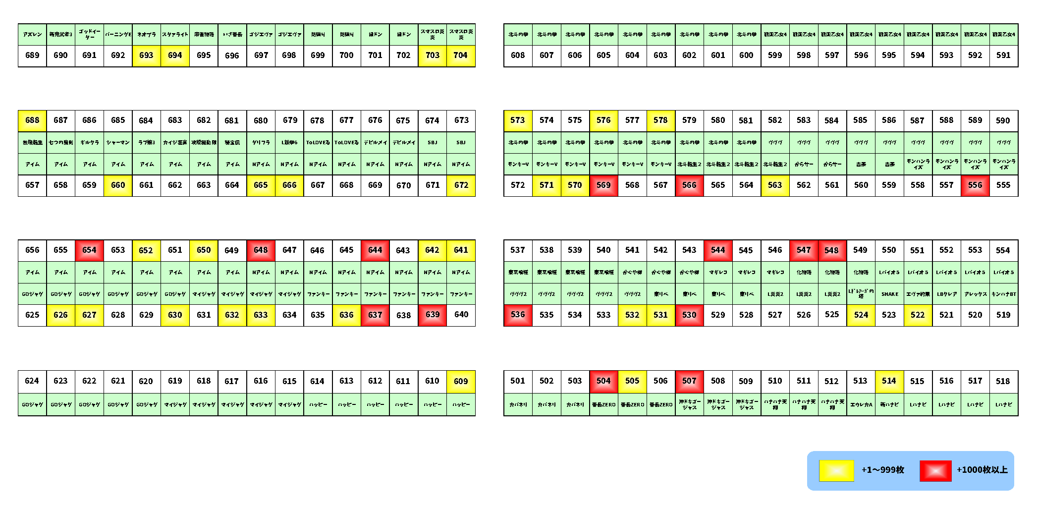 | 1 | 507 | 沖ドキゴージャス | +4,891枚 |