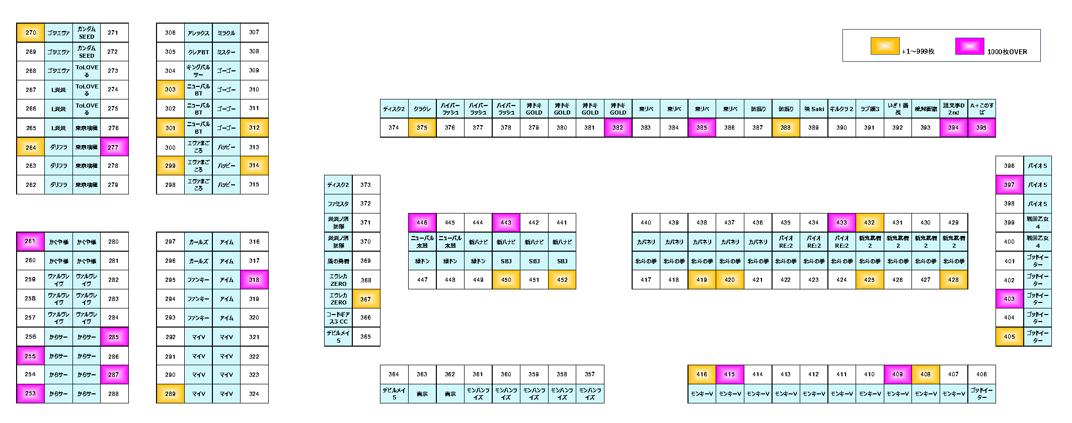 具体的には かぐや、ゴジエヴァ、ヴヴヴ、からサー、イーターほか 人気どころを中心に散らされていたように見えた。