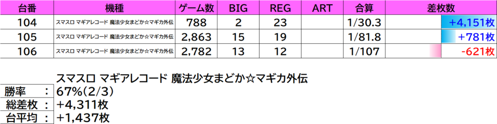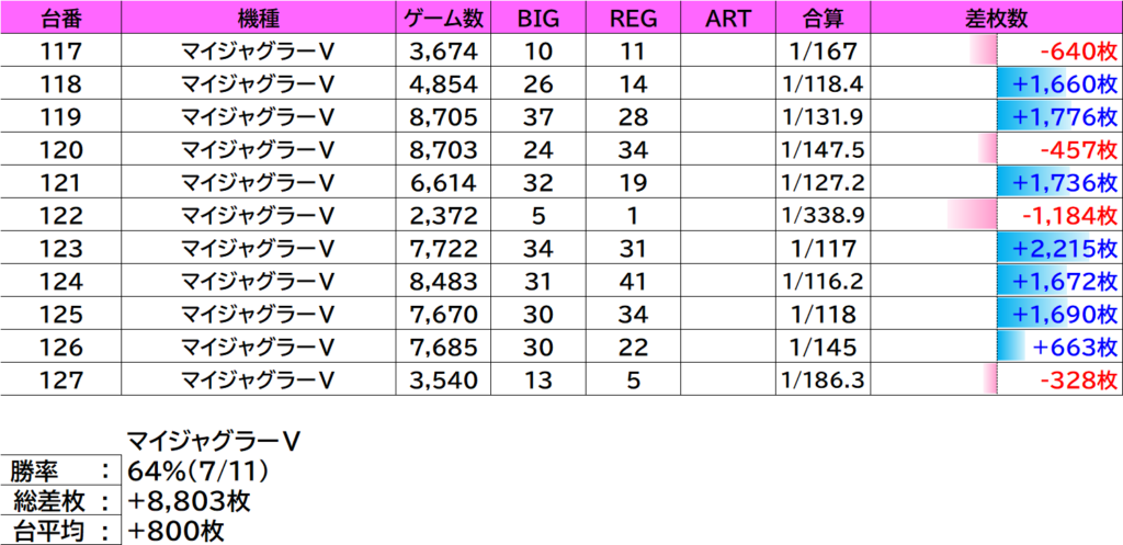 | 26 | マイジャグラーV | 124 | +1,672枚 |