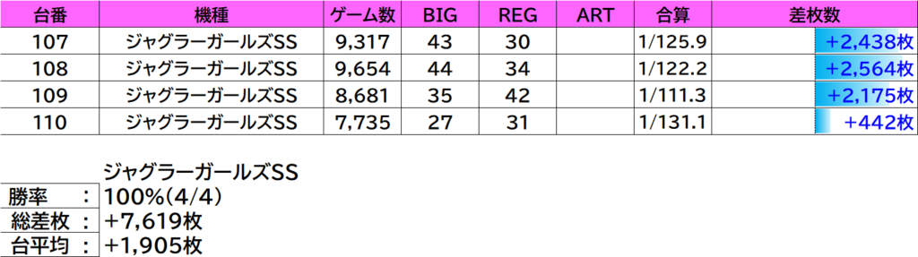 | 14 | ジャグラーガールズ | 109 | +2,175枚 |