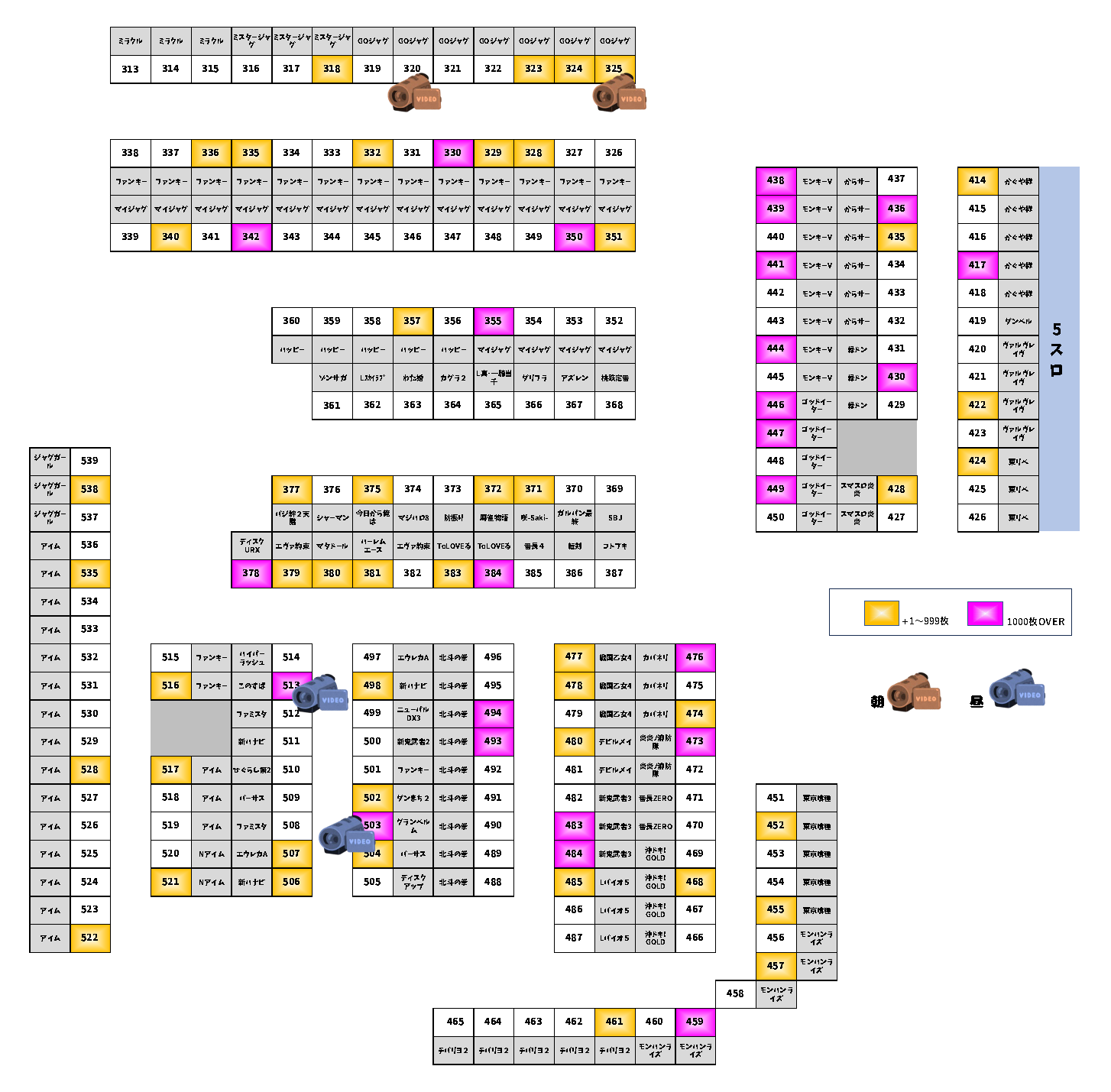 | 9 | 355 | マイジャグ | +2,355枚 |