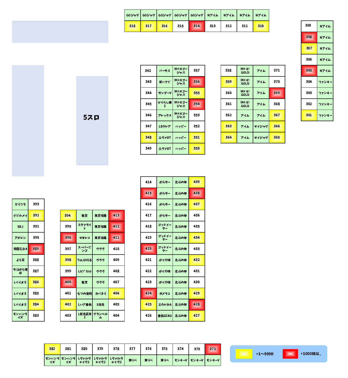 | 2 | 354 | 沖ドキゴージャス | +5,955枚 |