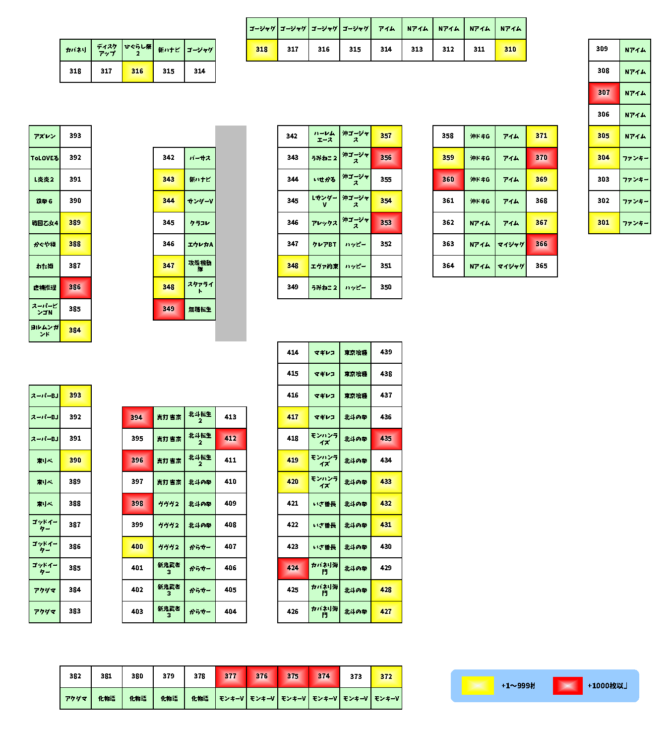 | 18 | 435 | 北斗の拳 | +1,025枚 |