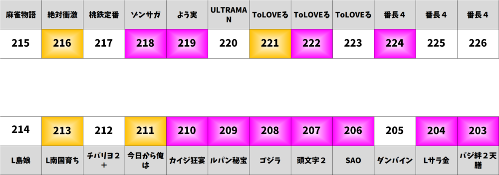 さらにメイン機種群でも、ピンポイントで狙えるチャンスが多かったことから、次回以降は「時間」「配置」「メインタイトル」――