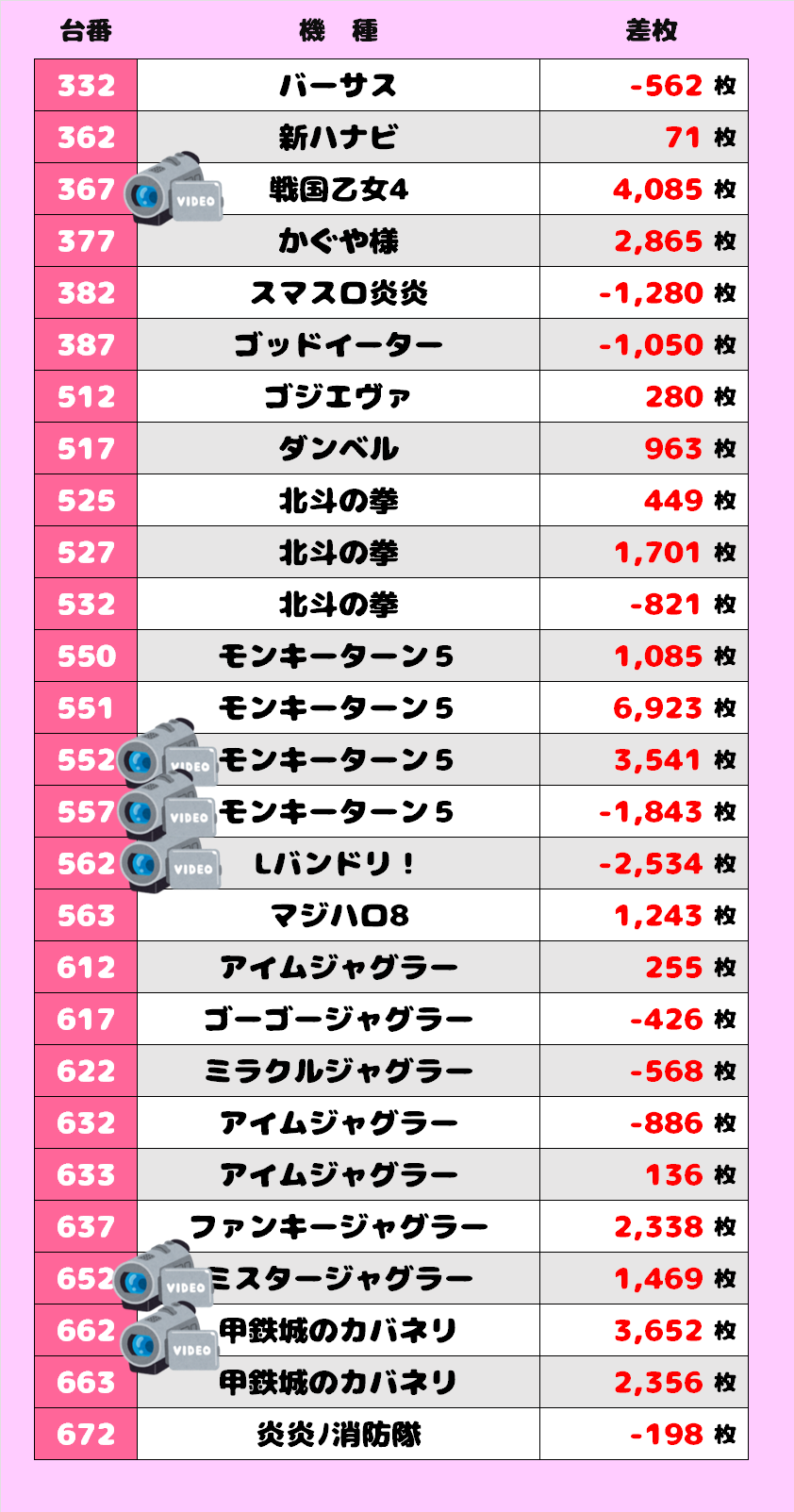 プラスの色付き台、特にプラス1000枚超のピンク台が全館から出現しているなっ!