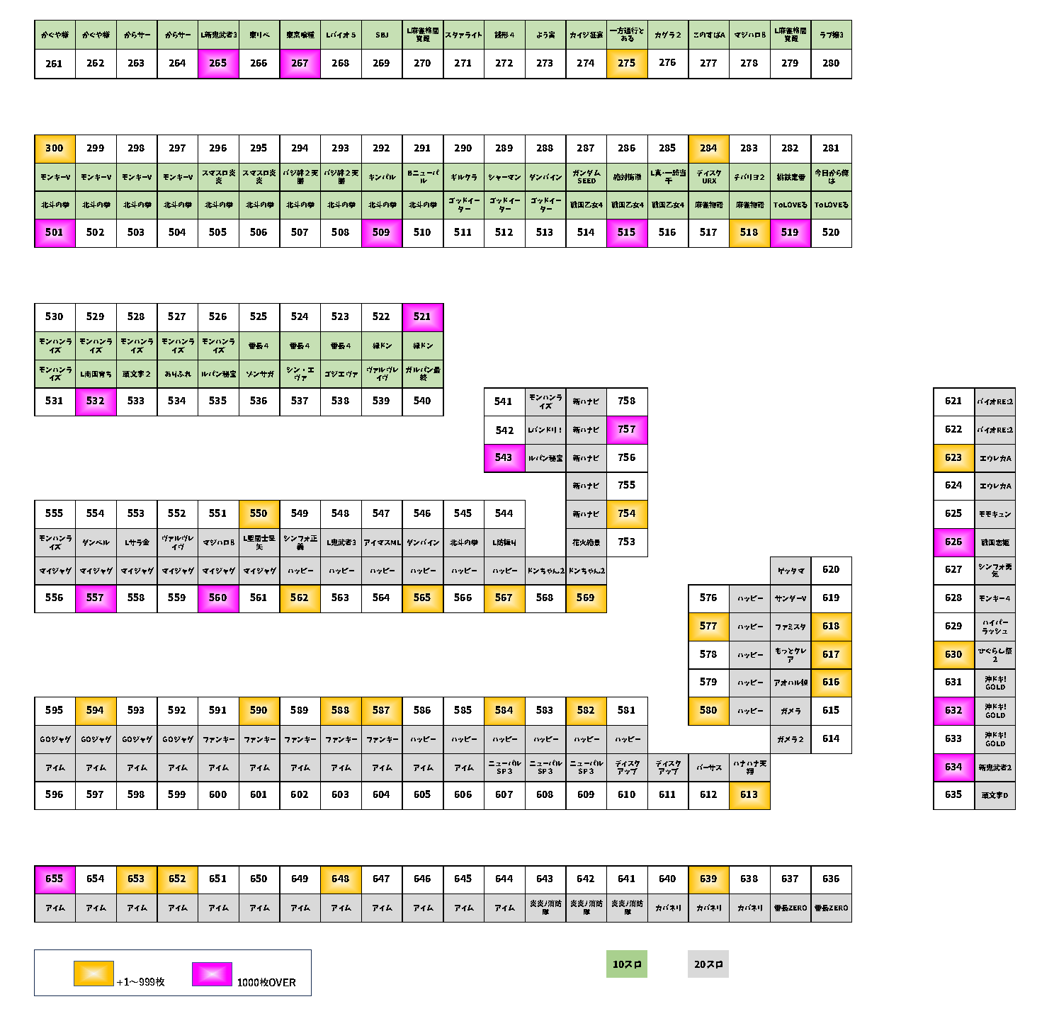 今回のサガスロ取材は初開催ということもあり、全体としてはやや控えめな稼働となったものの、データを精査すると末尾9・0の台番、そして角・角2付近の機種が明らかに好挙動を示していたようだ。