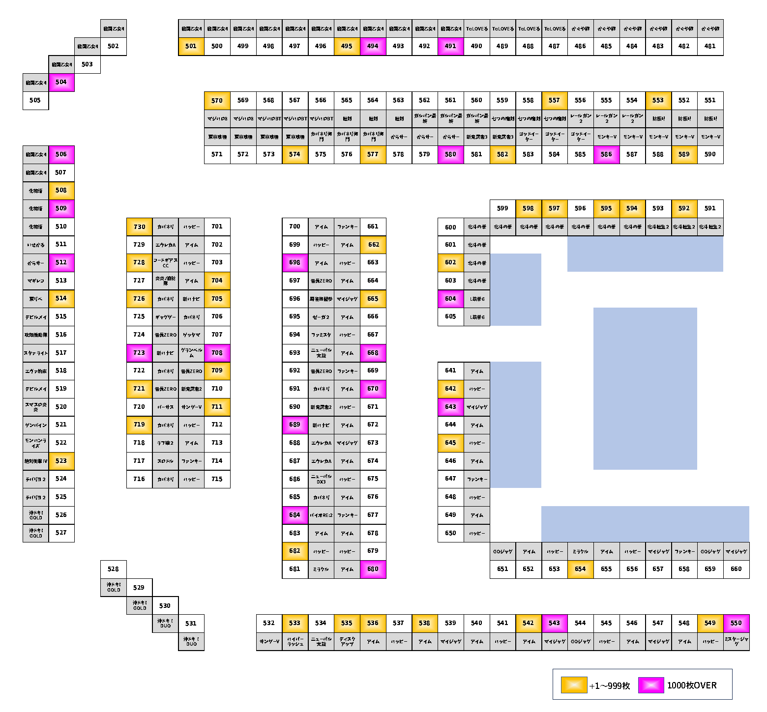 | 13 | 643 | マイジャグ | +1,348枚 |
