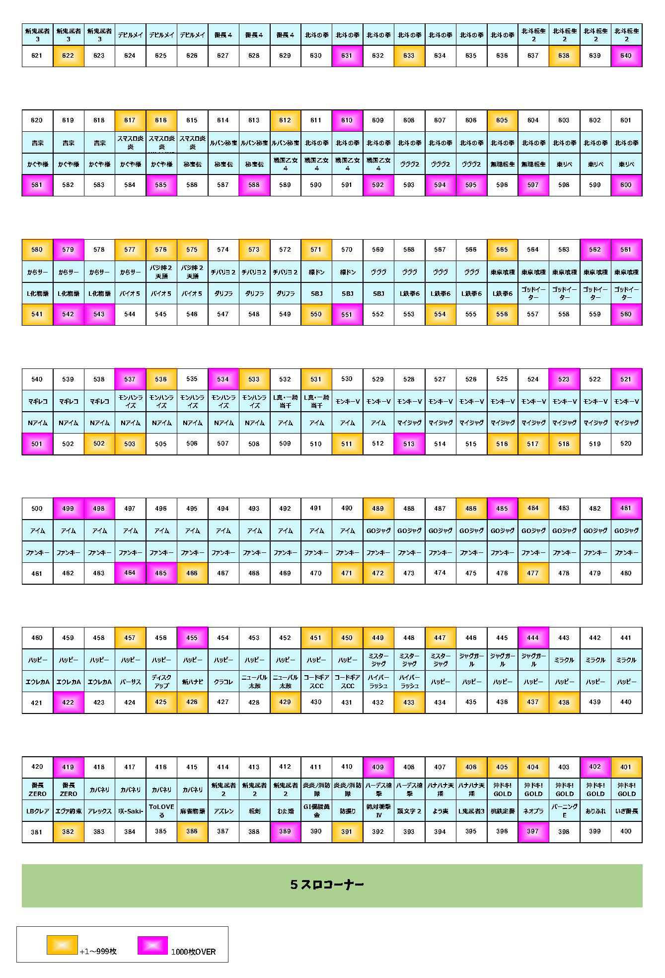 機種別の差枚ベストはこのようになっているようだ。