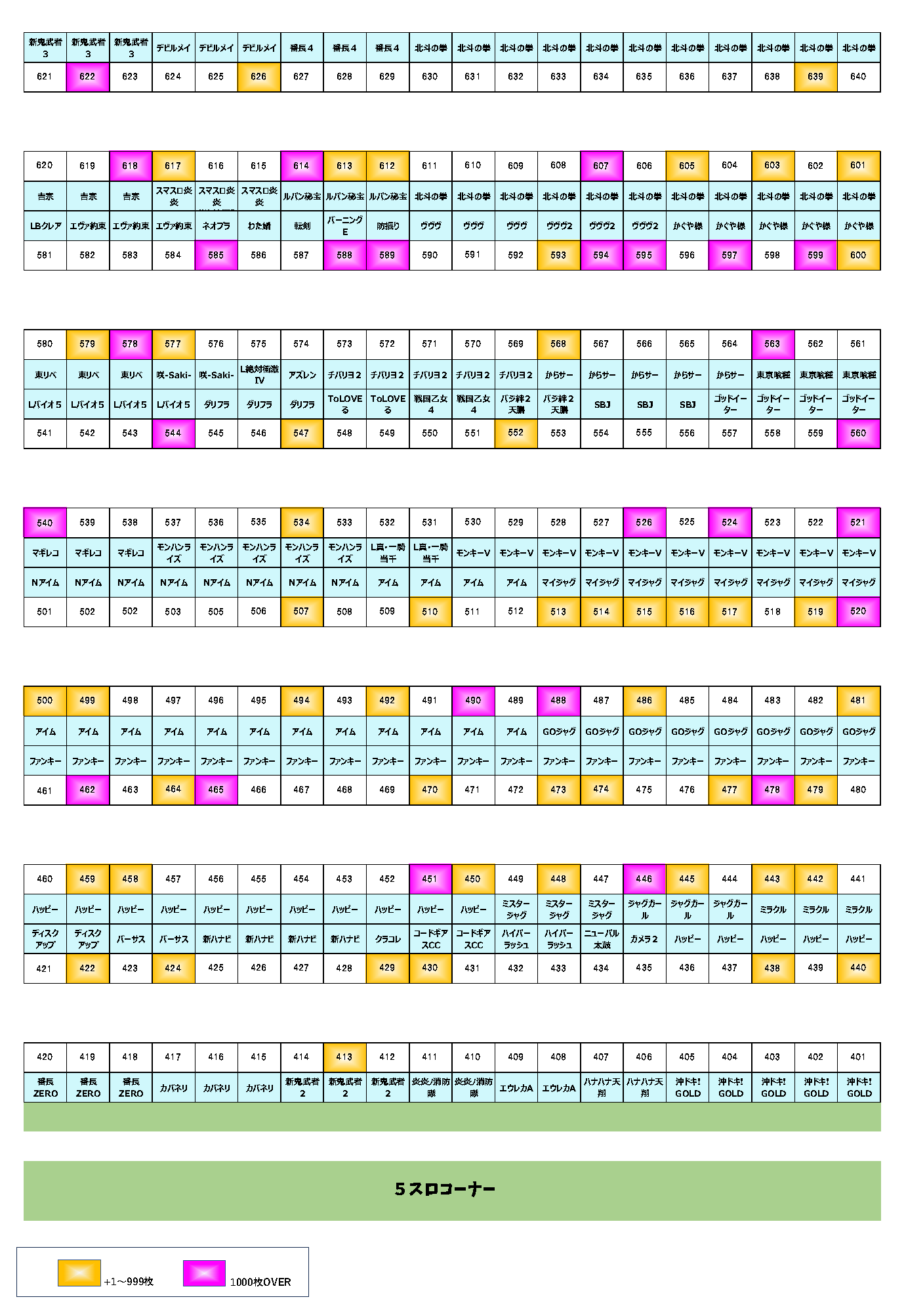 | 25 | 520 | マイジャグ | +1,189枚 |