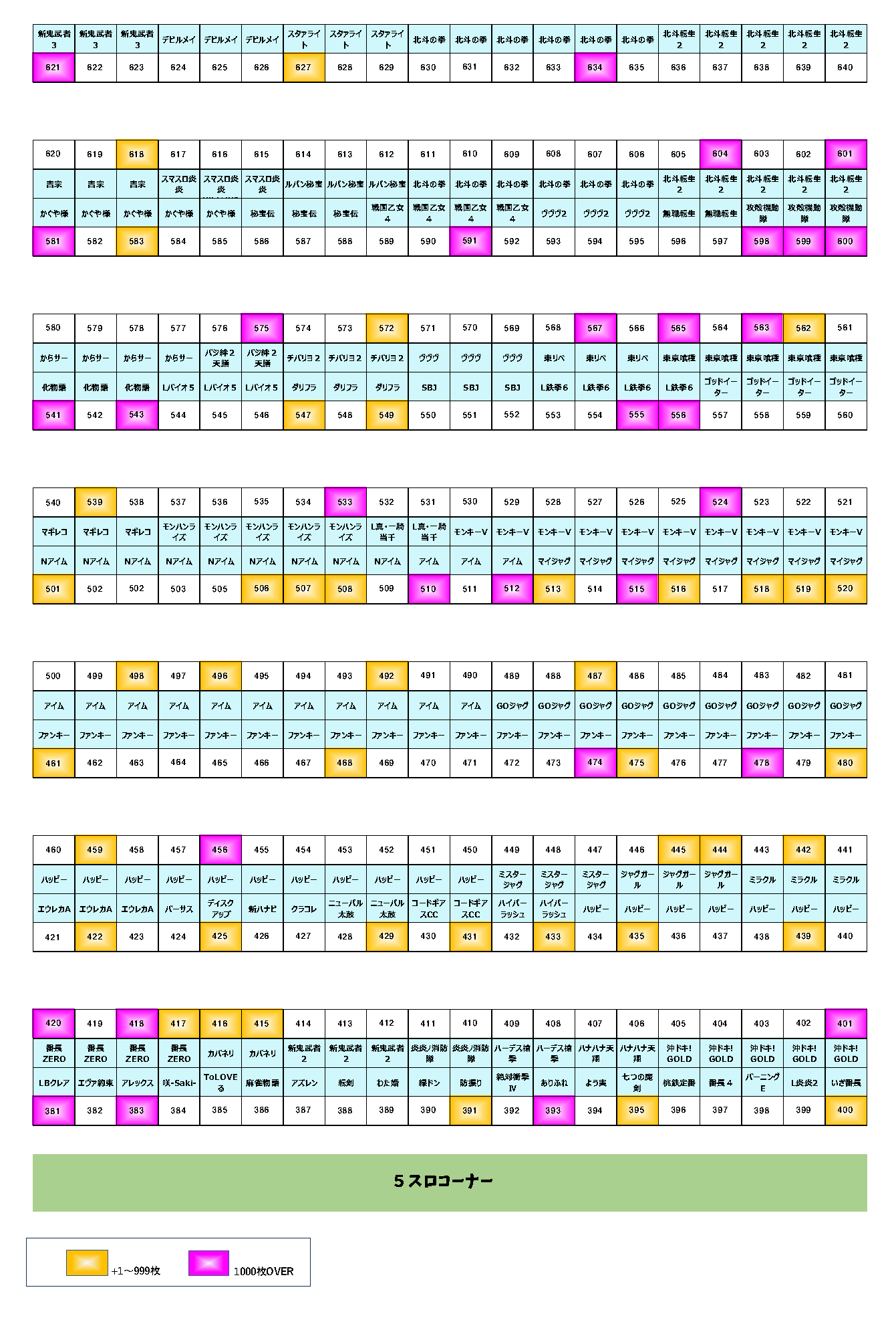 | 21 | 401 | 沖ドキ! GOLD | +1,908枚 |