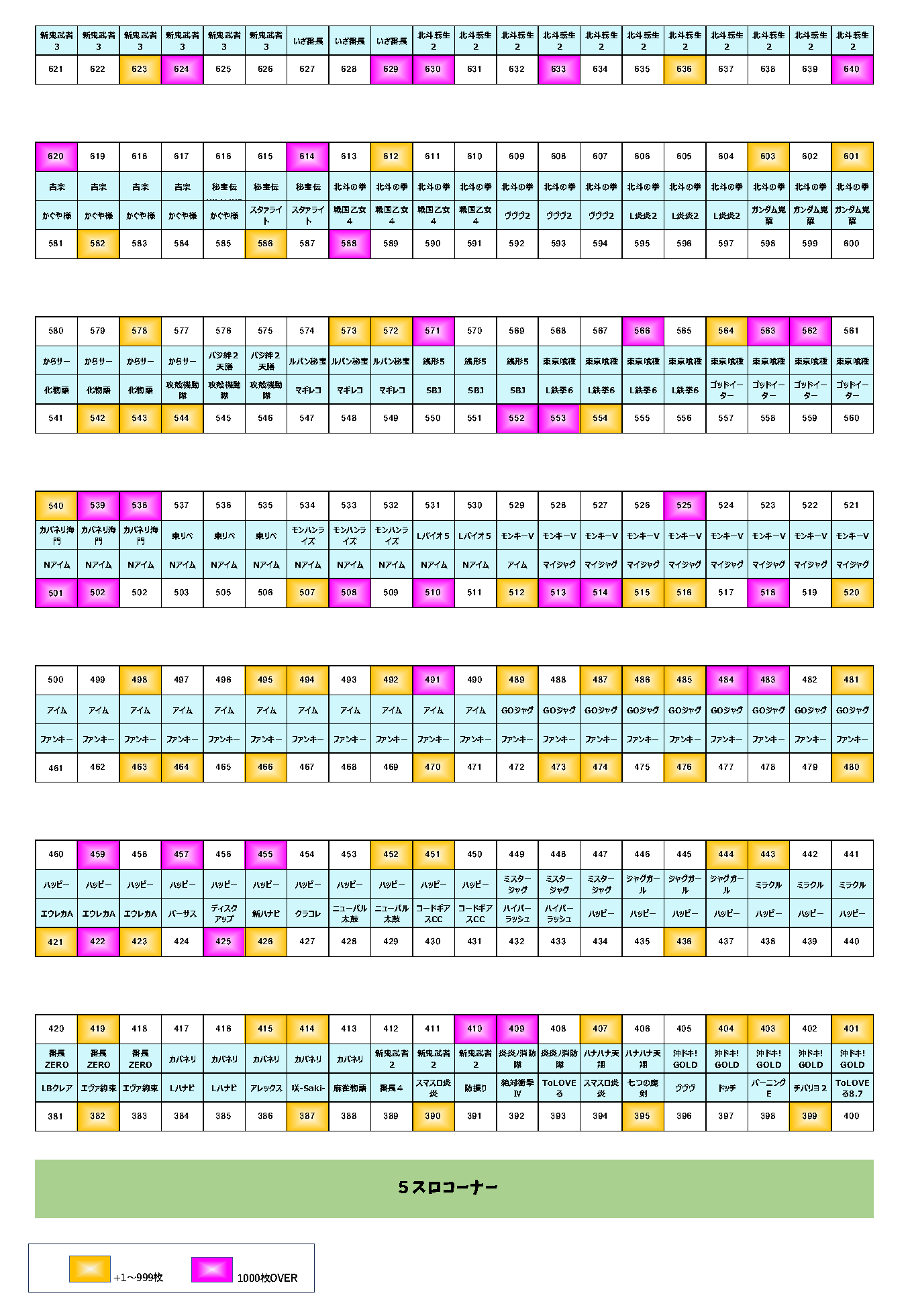 | 27 | 510 | Nアイム | +1,524枚 |